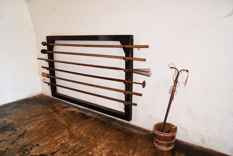 Fíjense en un par de fotos que incluyo, que muestran una de las paredes de los calabozos donde aparecen dibujados cinco galeones españoles. Dice la historia o la leyenda que fueron trazados por un capitán sevillano que resultó prisionero en un motín a principios del siglo XIX.